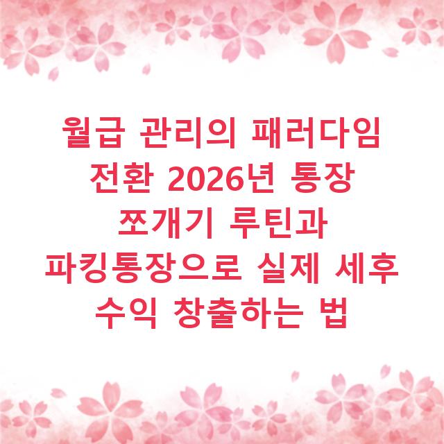 월급 관리의 패러다임 전환 2026년 통장 쪼개기 루틴과 파킹통장으로 실제 세후 수익 창출하는 법