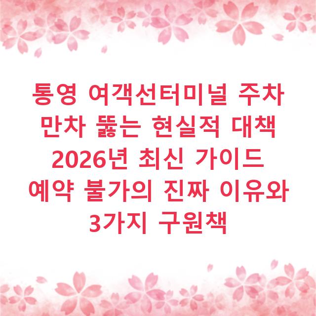예, 절대적으로 불가능합니다. 이것이 가장 먼저 직시해야 할 사실입니다. 터미널 부지 내 공식 주차장(약 150대 수용)은 100% 선착순으로 운영되며, 전화나 온라인을 통한 사전 예약 서비스는 존재하지 않습니다. 2025년 통영시 교통과와 한국해운조합 간 협의 자료를 보면, 통합 예약 시스템 구축 논의는 있었으나 예산과 기술적 문제로 2026년 현재까지 유보 상태입니다. 즉, '예약하면 안심'이라는 착각은 버려야 하는 첫 번째 관문이죠.
