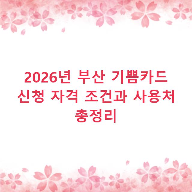 ※ 이 글에 포함된 지원 자격, 소득 기준, 신청 일정, 사용 기간 등 모든 수치와 정보는 2026년 부산광역시 공개 공고 자료를 기반으로 작성되었습니다. 지자체 사업의 특성상 연도별로 세부 조건, 예산, 모집 규모가 변경될 수 있으며, 특히 중소기업 기준은 관련 법령 개정에 따라 변동 가능합니다. 모든 정보는 신청 시점에 반드시 부산 기쁨카드 공식 홈페이지의 최신 공고문을 통해 직접 재확인하시기 바랍니다.