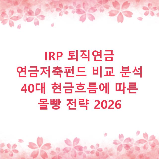 2. 40대의 효율적 전략은 '연금저축펀드 납입 → 세금 환급금을 IRP 개설 자금으로 전환'하는 반직관적 자금 순환으로, 동일 자본으로 두 계좌의 장점을 모두 취할 수 있습니다.