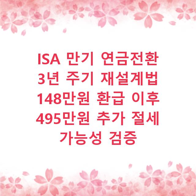ISA 만기 연금전환, 정말 148만원만 환급받고 끝나는 건가요?